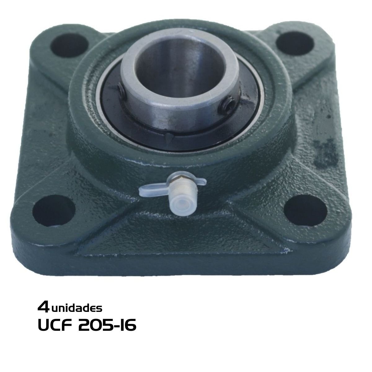 Mancal Quadrado Flange F205 F 205 - DmrTamanho: F205 | Quant: 4xRolamento para Mancal Uc205-16 Uc 205-16 - 1 - 25,4mm DmrTamanho: UC205-16 | Quant: 4x