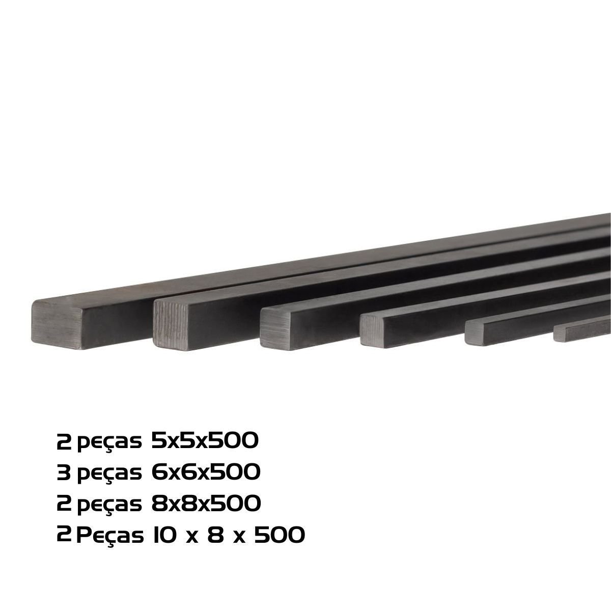 Chaveta Quadrada Barra 5x5x500mm em Aço 1045Cor: 1 Pç | Tamanho: 5 X 5 X 500 | Quant: 2xChaveta Quadrada Barra 6x6x500mm em Aço 1045 - 6 X 6 X 500mmCor: 1 Pç | Tamanho: 6 X 6 X 500 | Quant: 3xChaveta Quadrada Barra 8x8x500mm em Aço 1045Cor: 1 Pç | Tamanho: 8 X 8 X 500 | Quant: 2xChaveta Retangular Barra 10x8x500mm em Aço 1045 - 8x10x500mmCor: 1 Pç | Tamanho: 10 X 8 X 500 | Quant: 2x