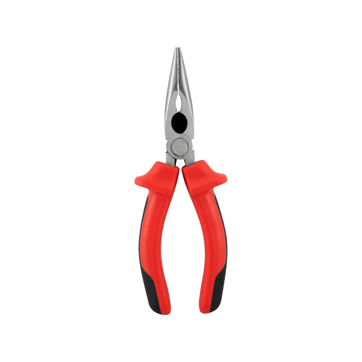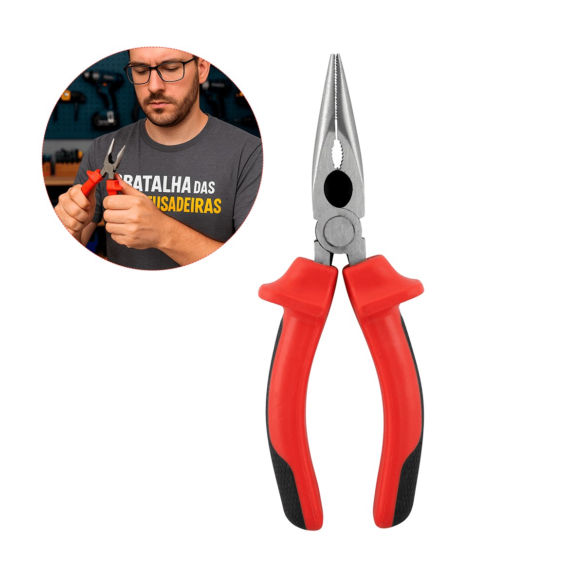 Com bico longo e reto, ele permite segurar, dobrar e cortar fios e arames com eficiência, sendo amplamente utilizado em instalações elétricas, montagens eletrônicas, manutenção e trabalhos manuais em geral.