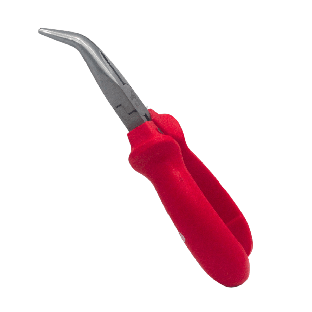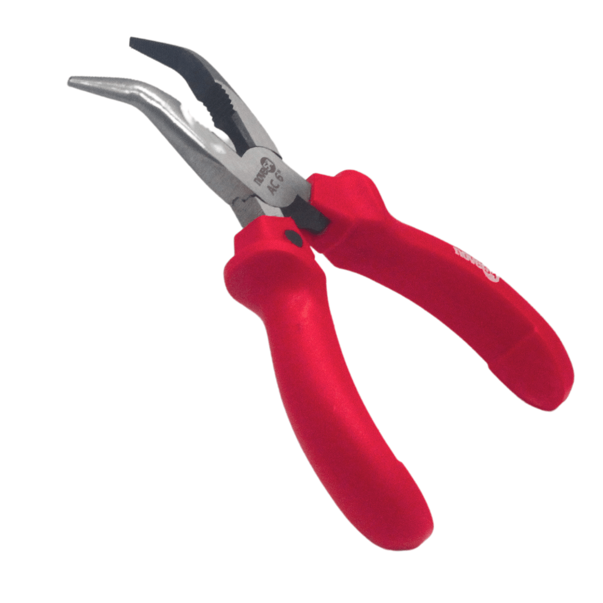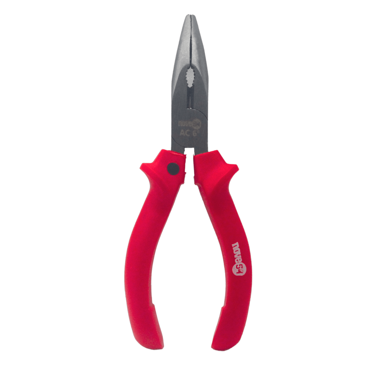 Possui função corte, mordentes com pontas estriadas e parte central côncava, além de acabamento polido.