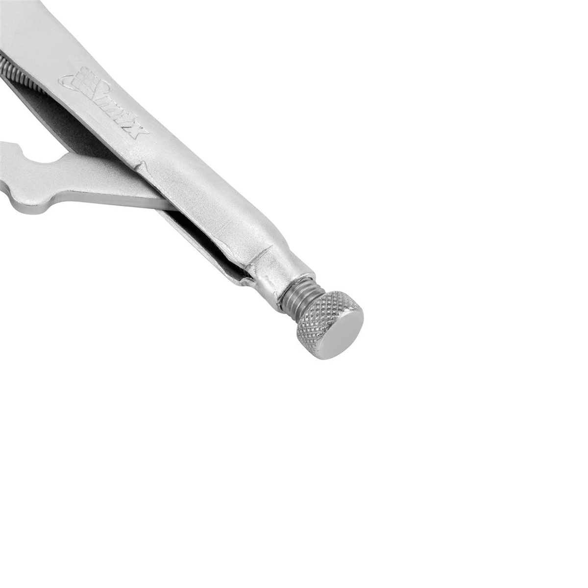- Ajuste Suave da Largura das Mandíbulas: Um dos destaques do Alicate de Pressão MTX 1843255 é o parafuso localizado na alça superior, que permite um ajuste fino e suave da largura das mandíbulas. Esta funcionalidade oferece ao usuário controle total sobre o tamanho da abertura, garantindo uma adaptação perfeita à peça em trabalho e melhorando significativamente a eficiência e a precisão da fixação.