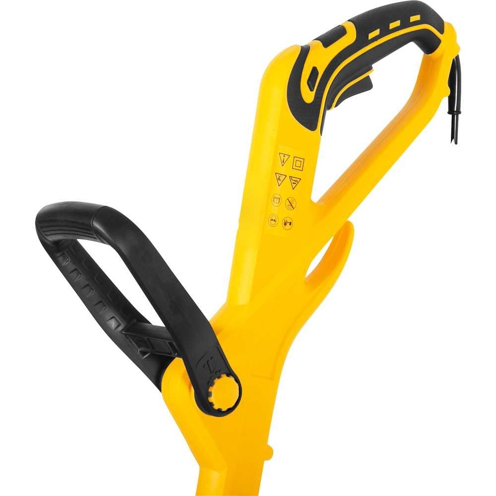 Leve, prático e funcional, possui punho auxiliar ajustável, corpo extensível, motor elétrico com dois rolamentos, trava que não deixa a extensão elétrica desconectar, carretel com saída dupla para o fio, sistema de avanço manual e corte automático do fio de nylon. Possui ainda, roda auxiliar de apoio para cortar as bordas da grama e cabeça com possibilidade de rotação, podendo ser posicionada na vertical ou horizontal, proporcionando maior facilidade nos acabamentos, além de limitador de distância que evita que o fio de nylon danifique o tronco ou o caule das plantas.