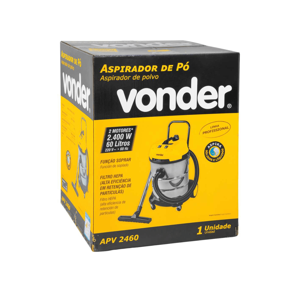 Acompanha: 1 mangueira flexível de sucção, 2 tubos extensores, 1 bocal para cantos, 1 bocal escova, 1 bocal multiuso, 2 rodas, 2 rodízios,1 filtro de pano lavável/reutilizável, 1 filtro esponja e 1 filtro HEPA (Alta Eficiência em Retenção de Partículas).