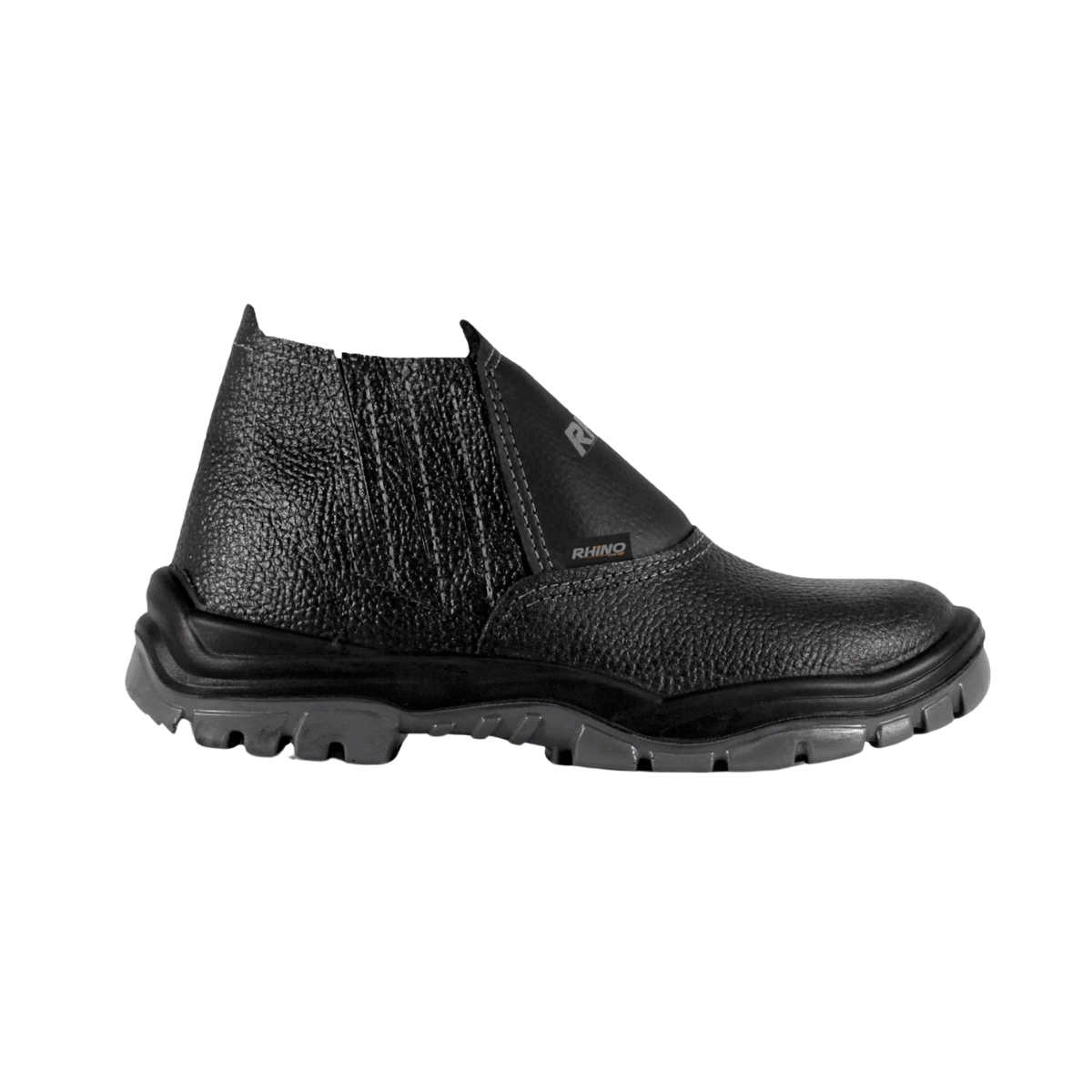 Constituído de gáspea em vaqueta, traseira em couro e inserto em vaqueta, colarinho forrado e estofado.