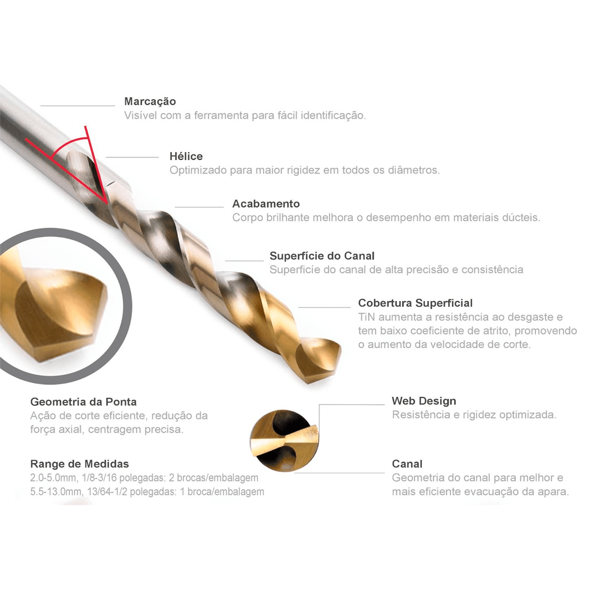 Destinada na perfuração de materiais como ferro, aço, ferro fundido, prata, ligas de cobre duro,