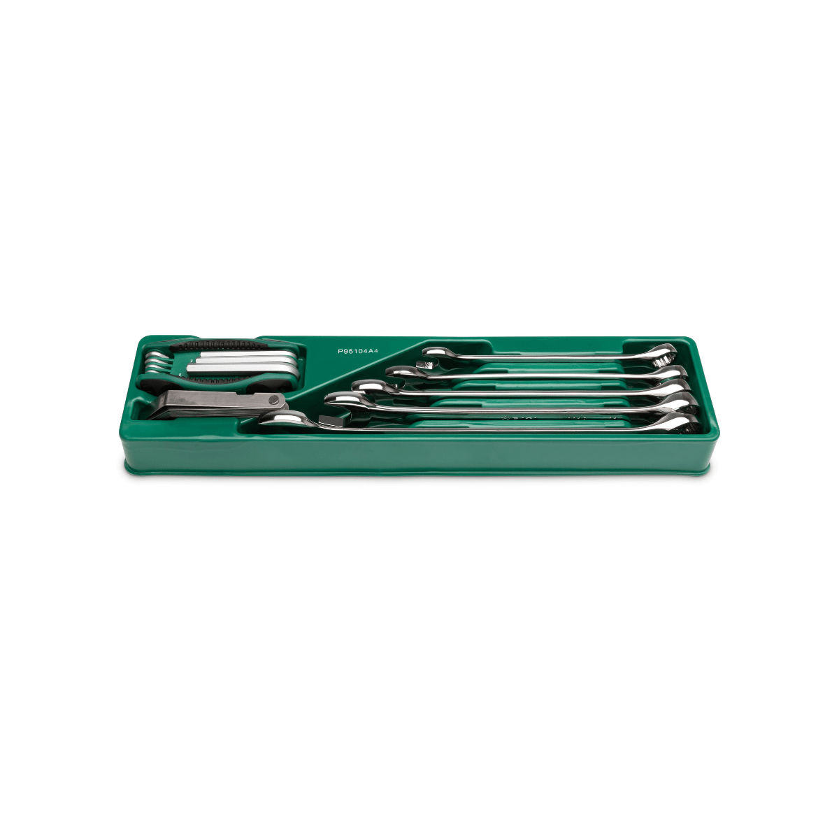 Soquetes Sextavados Longo 1/2: 17, 19, 21 mm11 - Chaves Combinadas: 8, 9, 10, 11, 12, 13, 14, 17, 19, 21, 24 mm2 Chaves de Fenda: 5 x 75 mm, 6 x 150 mm2 - Chaves Phillips: PH1 x 75 mm, PH2 x 150 mm