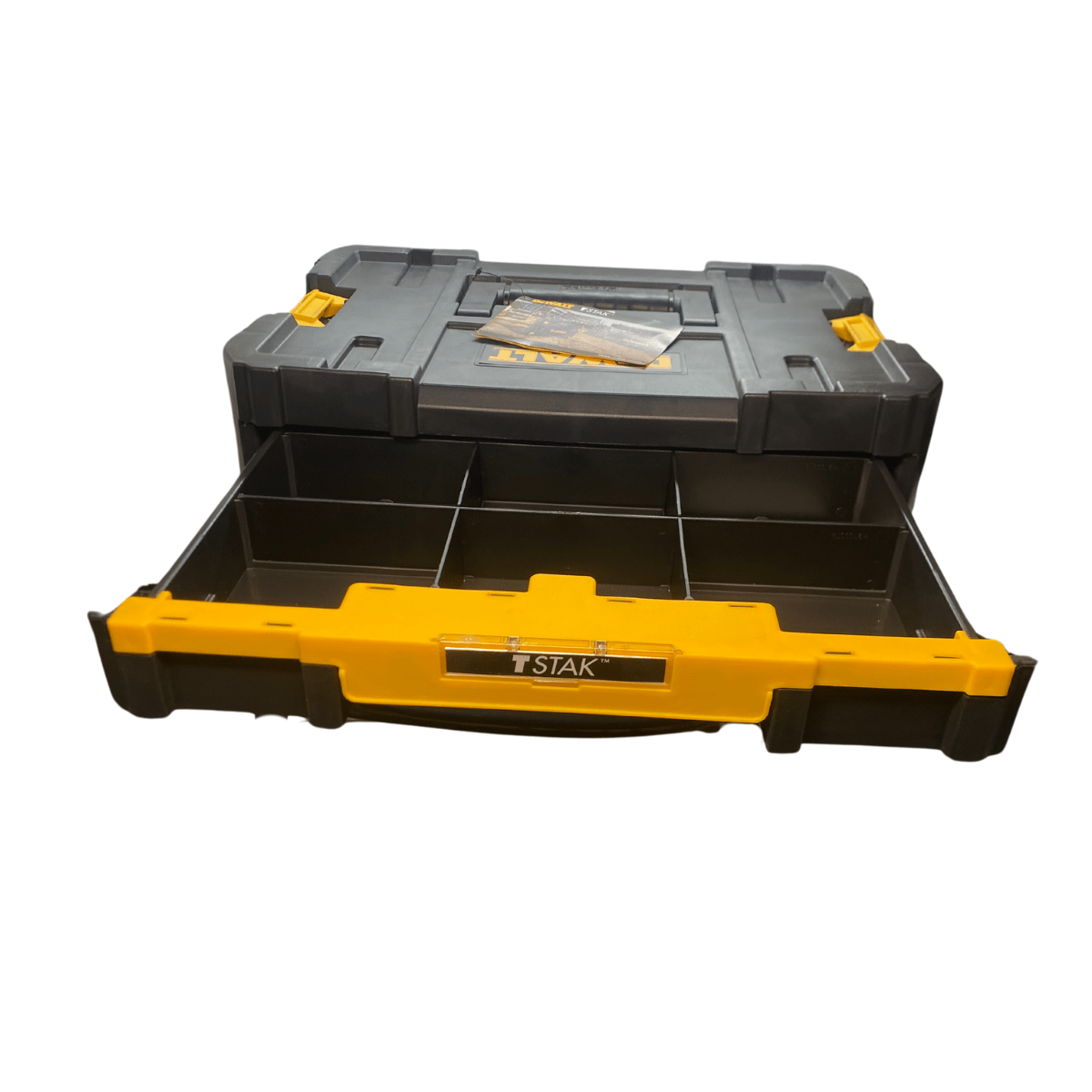 Itens Inclusos: 01 - Organizador de Ferramentas Dewalt TSTAK Nº4 DWST17804 16.5 com Duas Gavetas