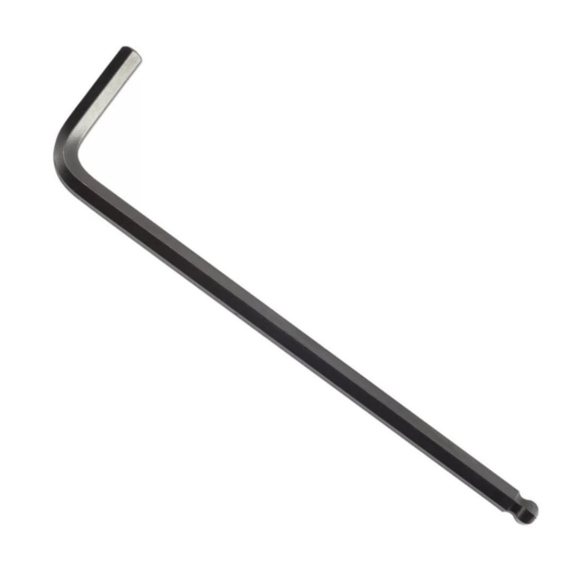 Tem ponta abaulada (arredondada) - essa ponta permite que a chave trabalhe com inclinação de até ~30° em relação ao eixo do parafuso, o que ajuda em locais de difícil acesso ou quando o acesso direto é inviável.