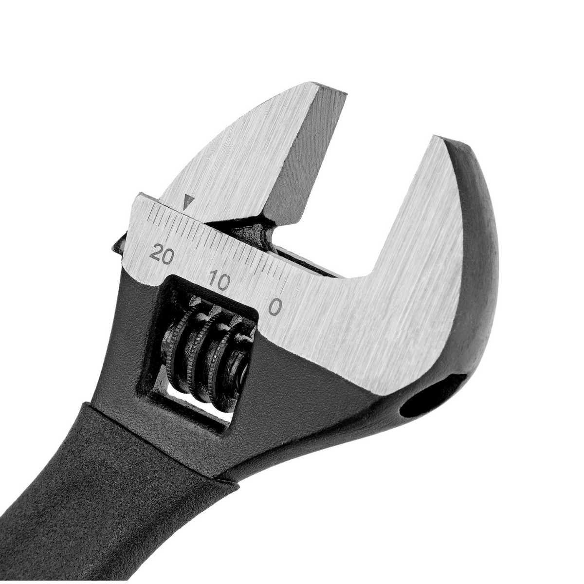 Substitui um conjunto completo de chaves de boca. As mandíbulas podem ser abertas a uma distância precisa, permitindo a fixação de peças de diferentes tamanhos. A chave ajustável é útil para trabalhos de mecânica, encanamento e reparação.