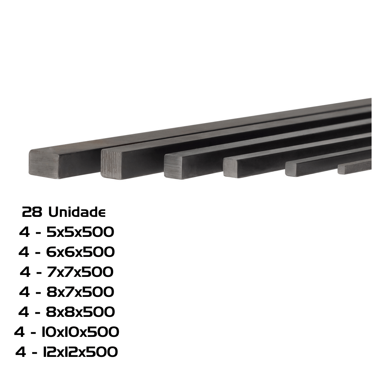 4 Unidade de Chaveta Quadrada Barra 12x12x500mm em Aço 1045