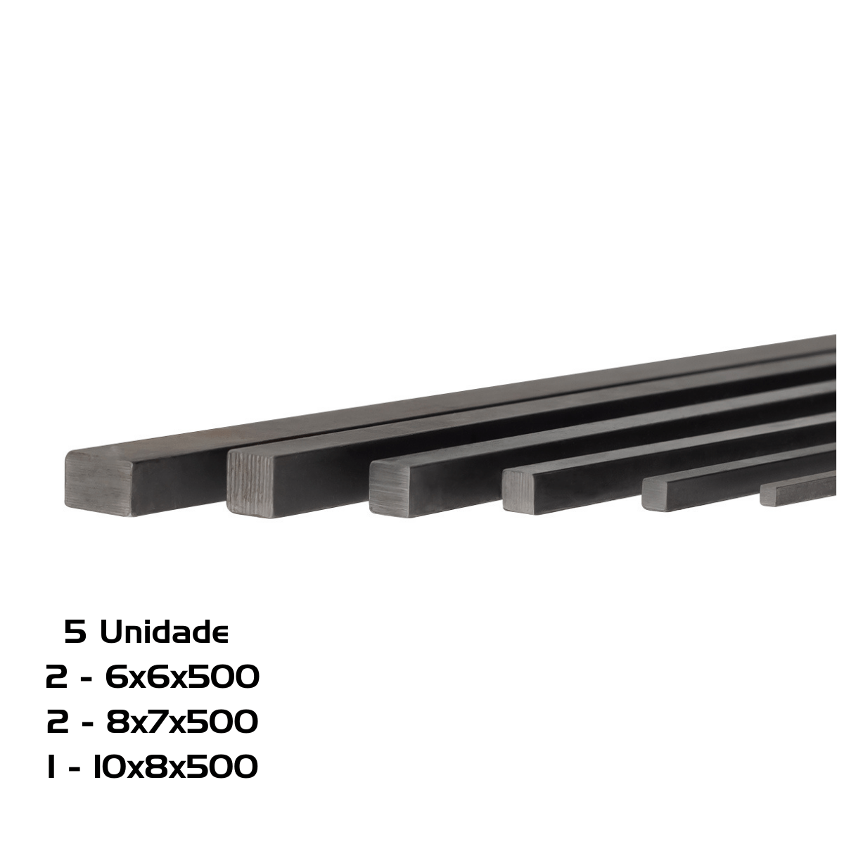Chaveta Quadrada Barra 2 Unidade 6x6x500, 2 Unidade 8x7x500 e 1 Unidade 10x8x500