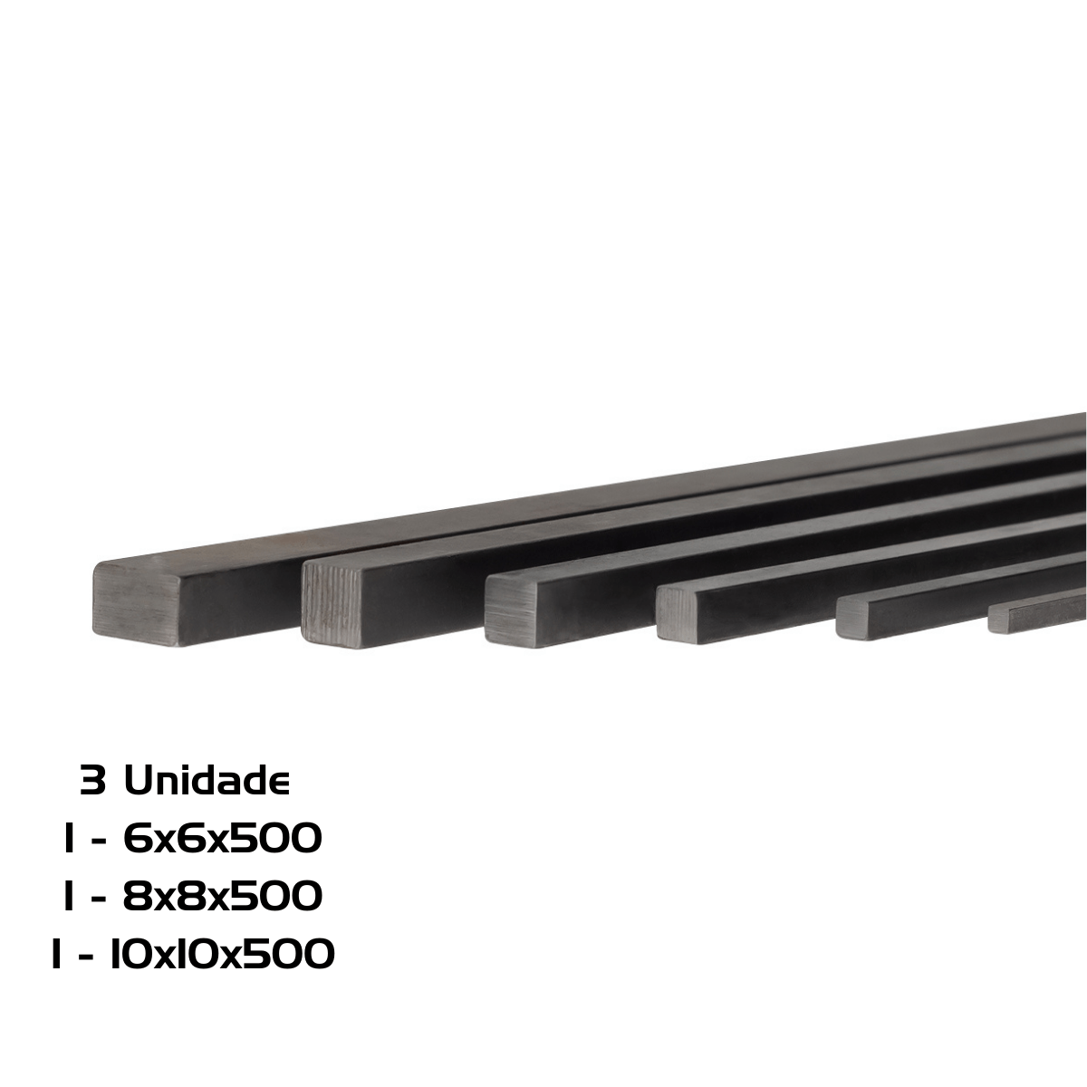 Kit com 1 Chaveta Quadrada Barra 6x6x500mm + 1 8x8x500mm + 1 10x10x500mm