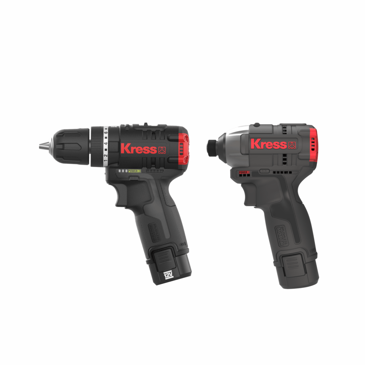 A KUC12 possui motor sistema Brushless e 3 funções, furar, parafusar e furar com martelete, construído pela Kress, produzindo excelente força de impacto e operação aprimorada para a maioria das tarefas de fixação de madeira e metal, com aplicações diferentes de 2 velocidades variáveis.