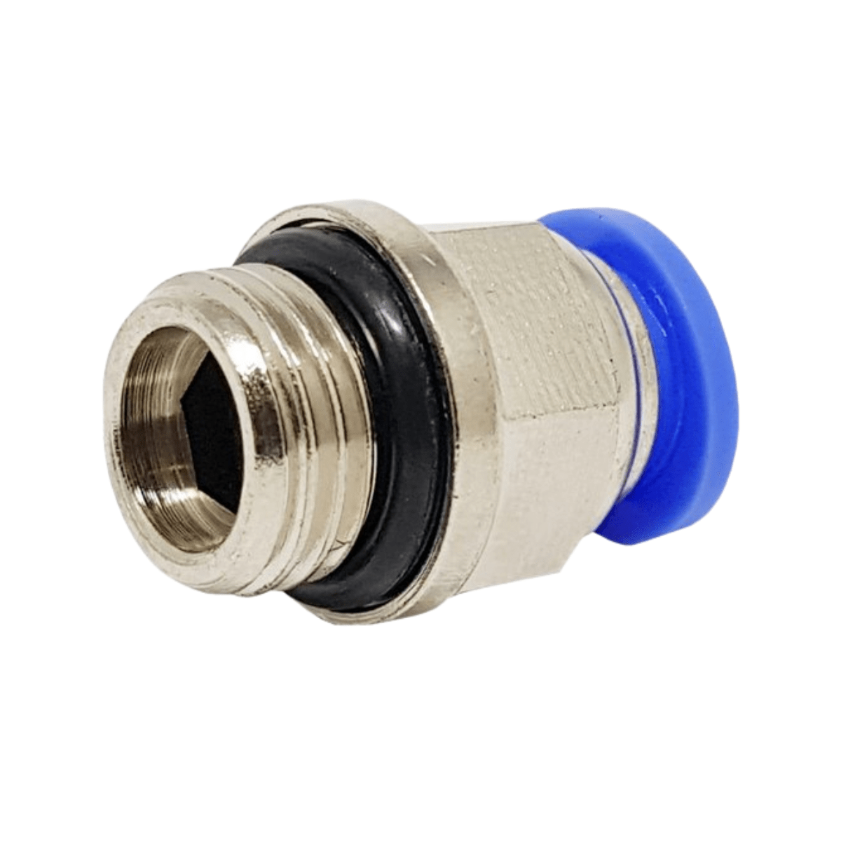 Conector Pneumatico Instantâneo Reta. As conexões rápidas Um toque em forma oval facilitam o engate e o desengate das tubulações. O corpo metálico niquelado deste conector instantâneo proporciona resistência contra desgaste e corrosão.