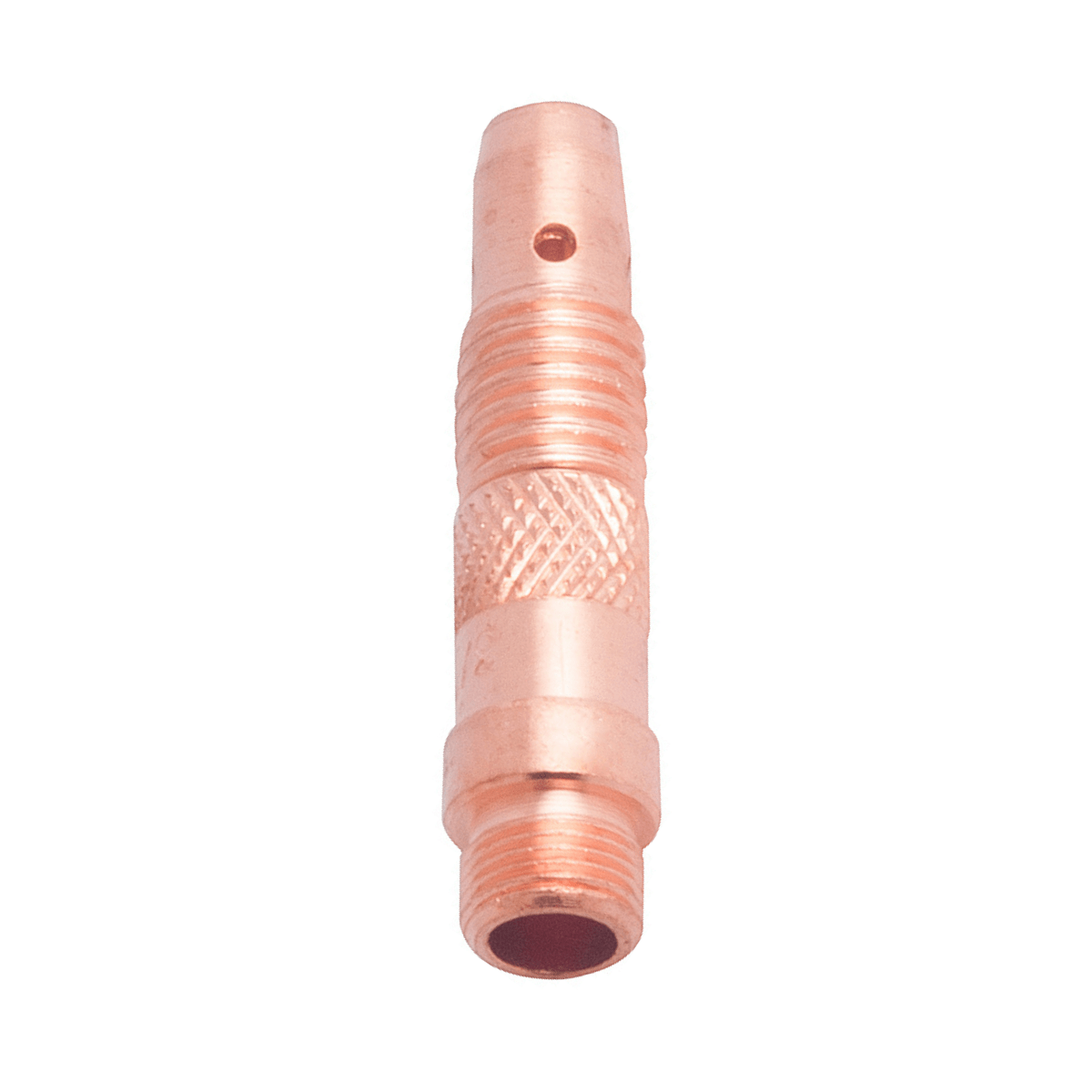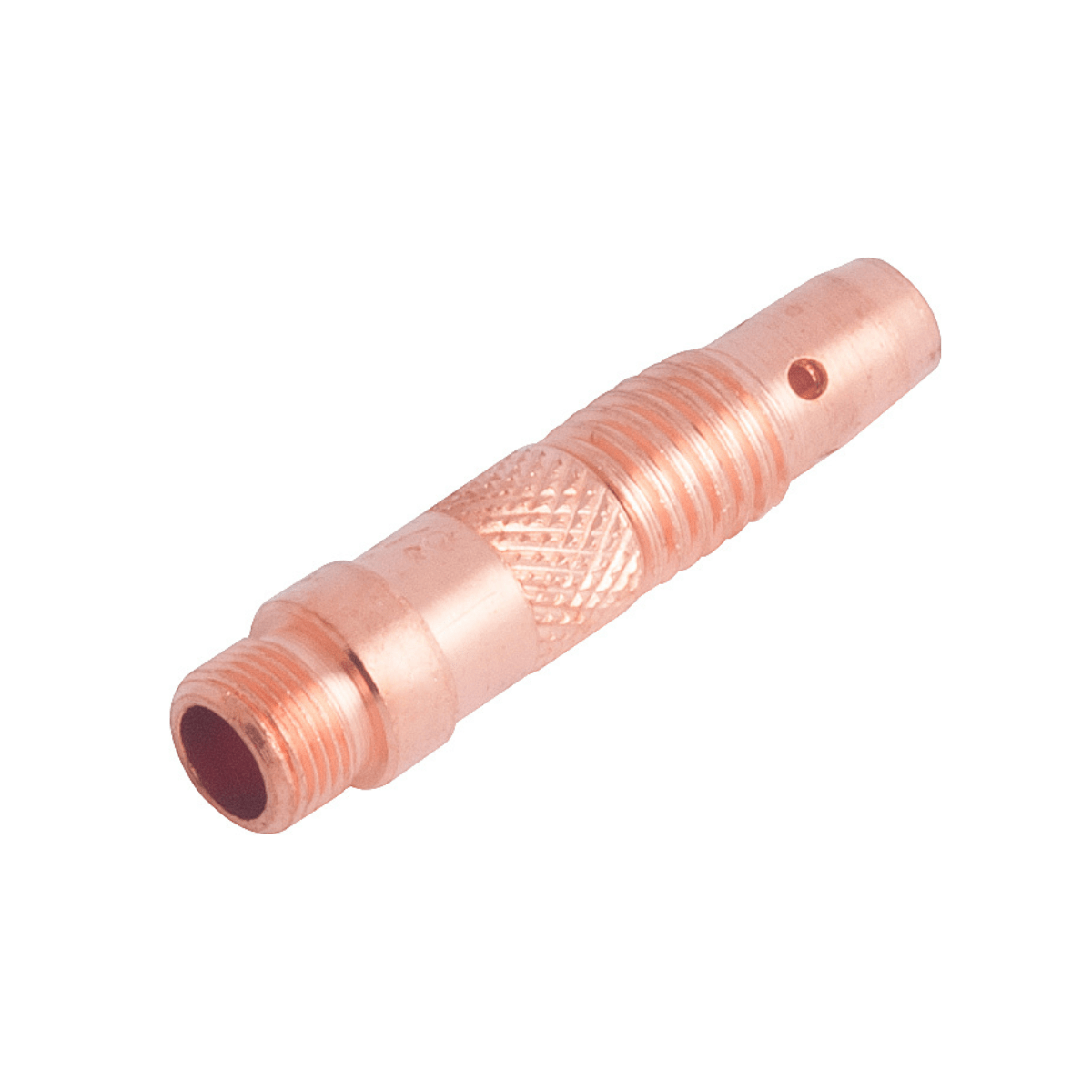 O corpo fixador é produzido em latão. O diâmetro interno do corpo fixador é determinado pelo diâmetro do eletrodo de tungstênio.