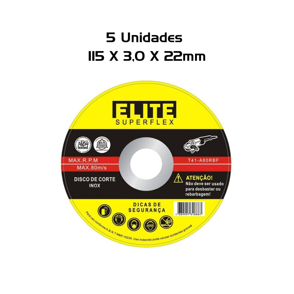 5 Unidade Disco de Corte 115 X 3,0 X 22mm Elite