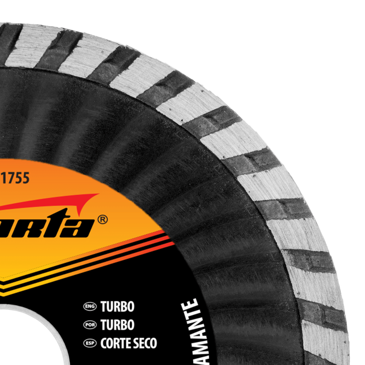 - Eficiente Dissipação de Calor e Lama: A característica turbo da parte de trabalho do disco é um diferencial que permite um corte rápido a seco, sem a necessidade de refrigeração com água. Essa tecnologia turbo promove uma dissipação de calor e remoção de resíduos de corte (lama) mais eficientes, resultando em cortes mais limpos e seguros, além de prolongar a vida útil do disco ao evitar o superaquecimento.