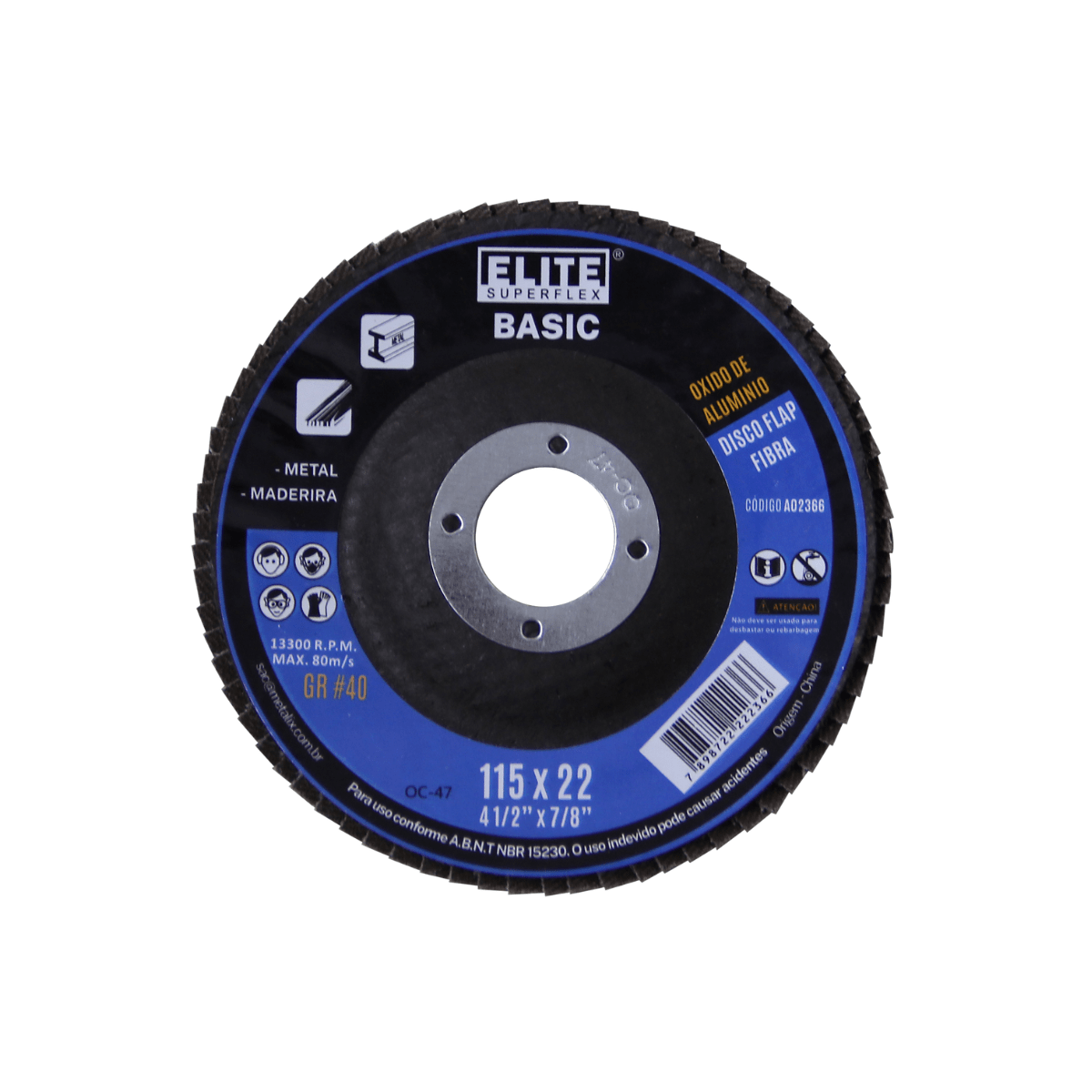 - Tipo de grão abrasivo: óxido de alumínio