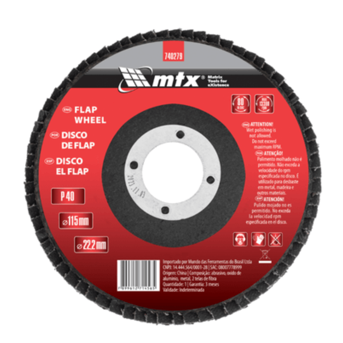 Disco Flap 4.1/2 - 115 X 22 Grão 40 Costado de Fibra MtxTamanho: GR40 | Quant: 5x