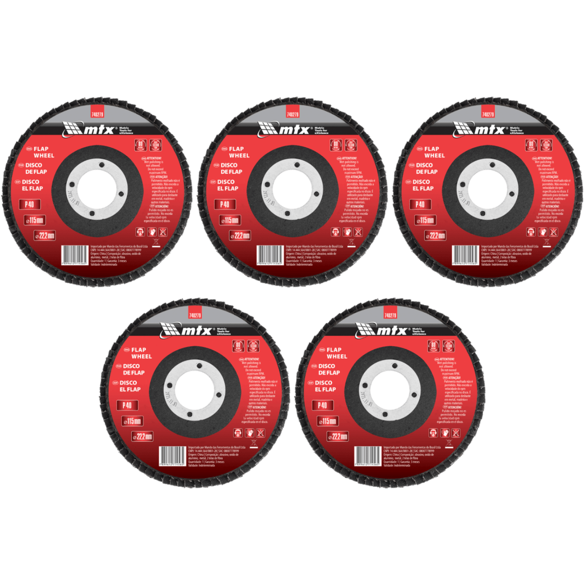 Disco Flap 4.1/2 - 115 X 22 Grão 40 Costado de Fibra Mtx 5 UND