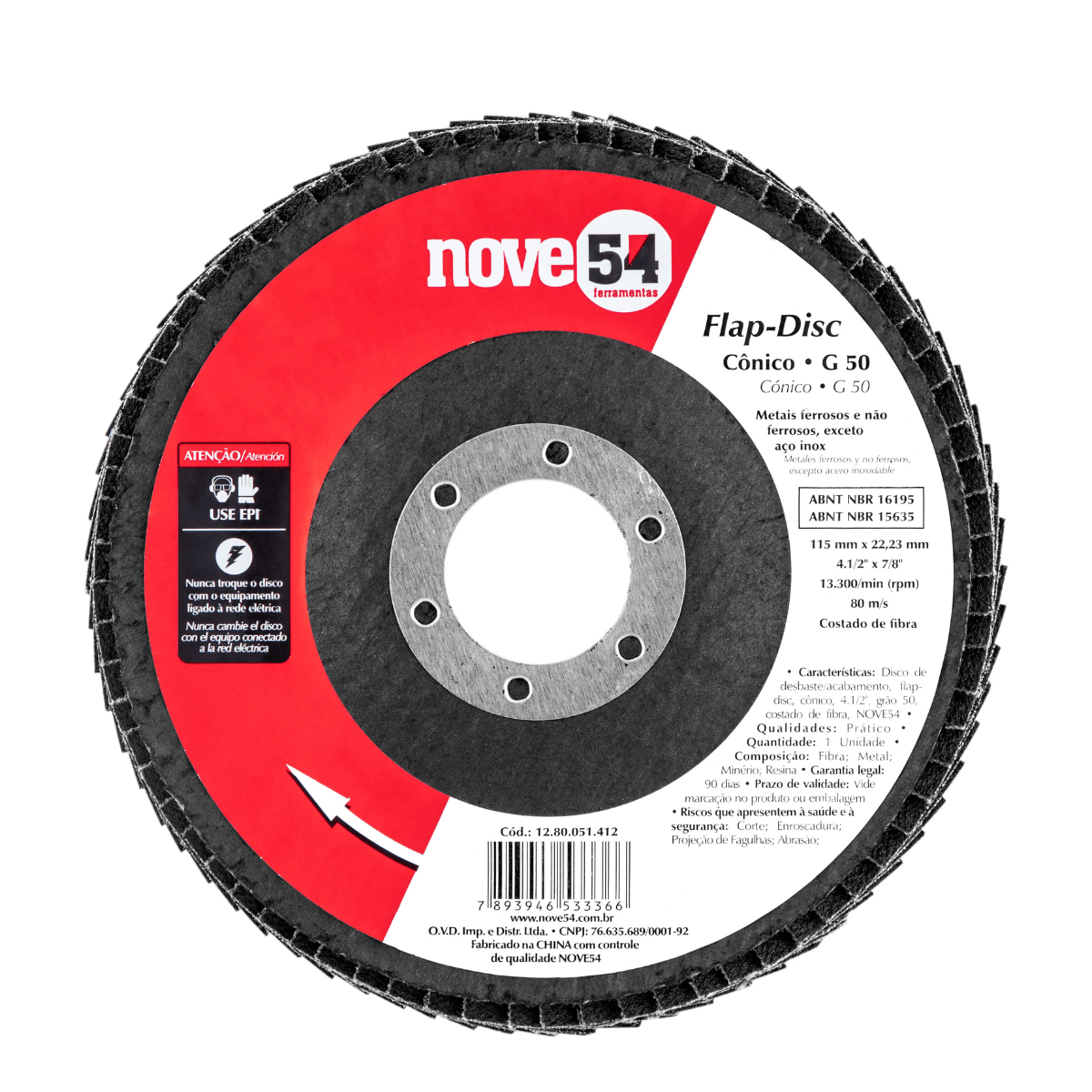 - Diâmetro externo do disco: 4.1/2 - 115 mm