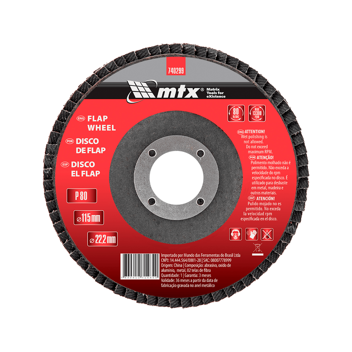 - Diâmetro externo do disco: 4.1/2 - 115 mm