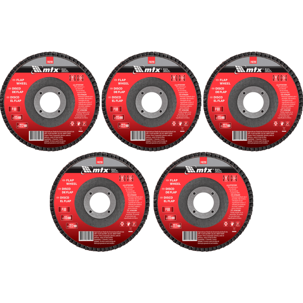 Disco Flap 4.1/2 - 115 X 22 Grão 80 Costado de Fibra MtxTamanho: GR80 | Quant: 5x