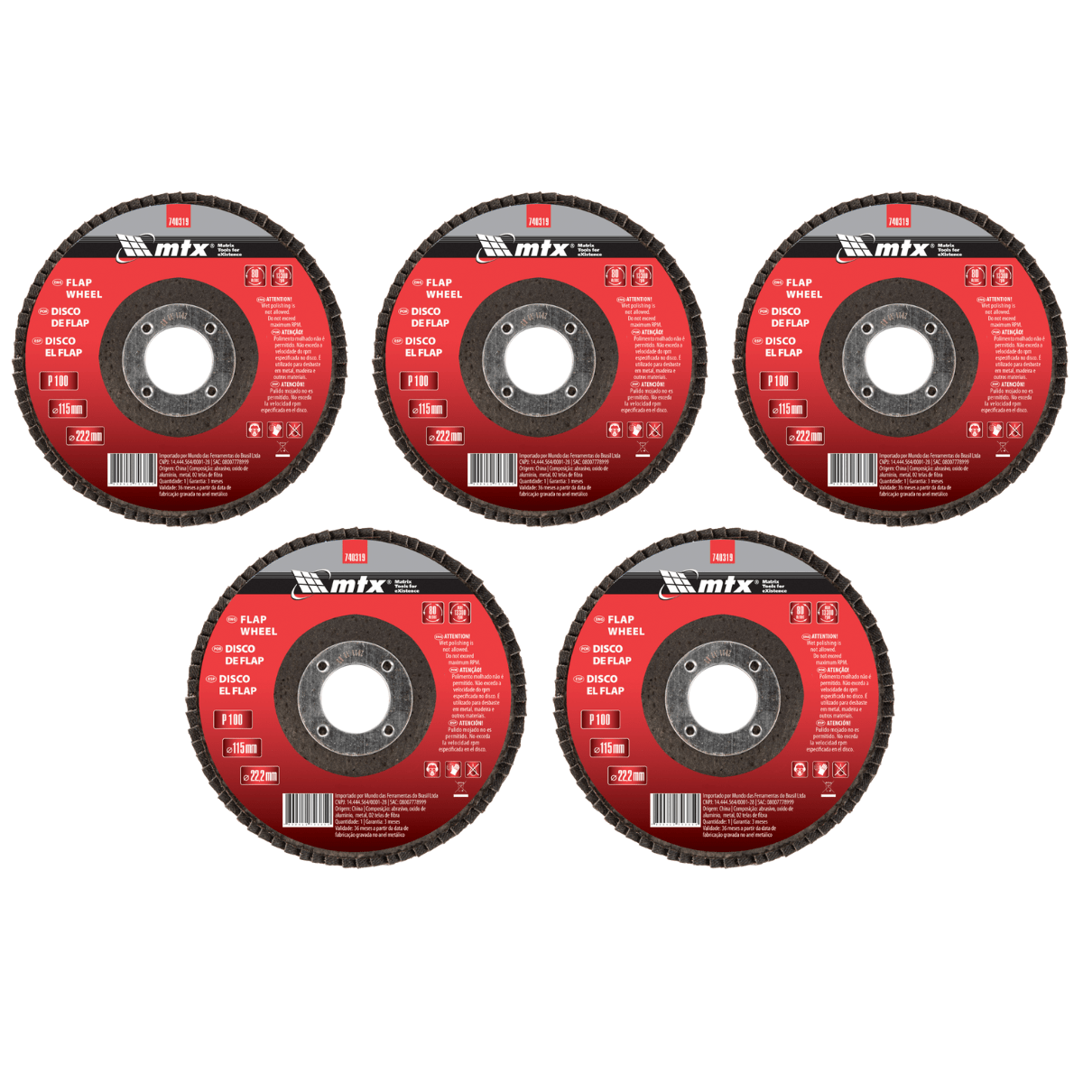 Disco Flap 4.1/2 - 115 X 22 Grão 100 Costado de Fibra MtxTamanho: GR100 | Quant: 5x