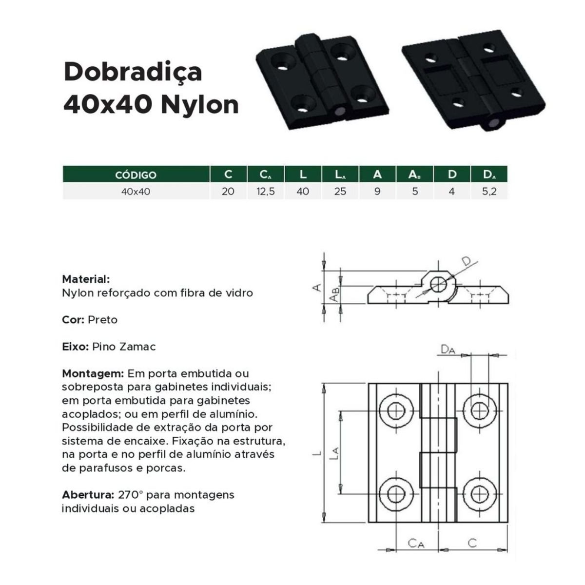 Dobradiça Nylon 40 X 40 para Máquinas IndustriaisCor: 1 Pç | Tamanho: 40X40 | Quant: 5x