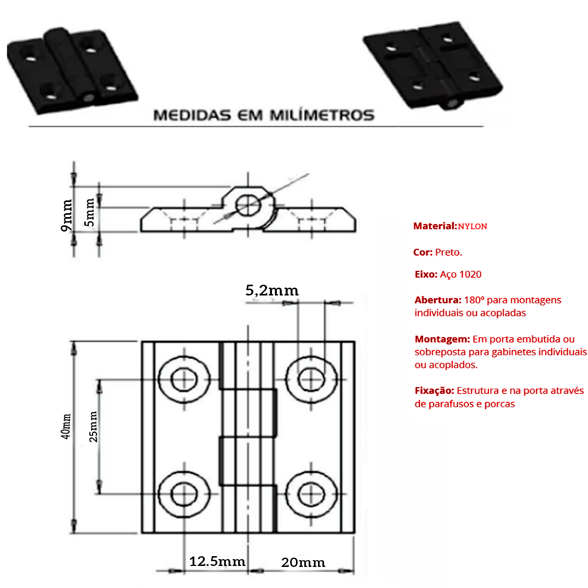 Montagem: Em porta embutida ou sobreposta para gabinetes individuais em porta embutida