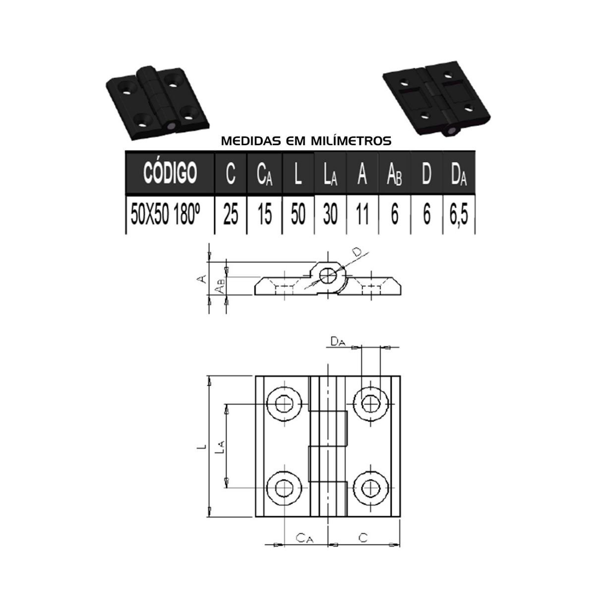 Dobradiça Nylon 50 X 50 P/ Máquinas IndustriaisCor: 1 Pç | Tamanho: 50X50 | Quant: 2x