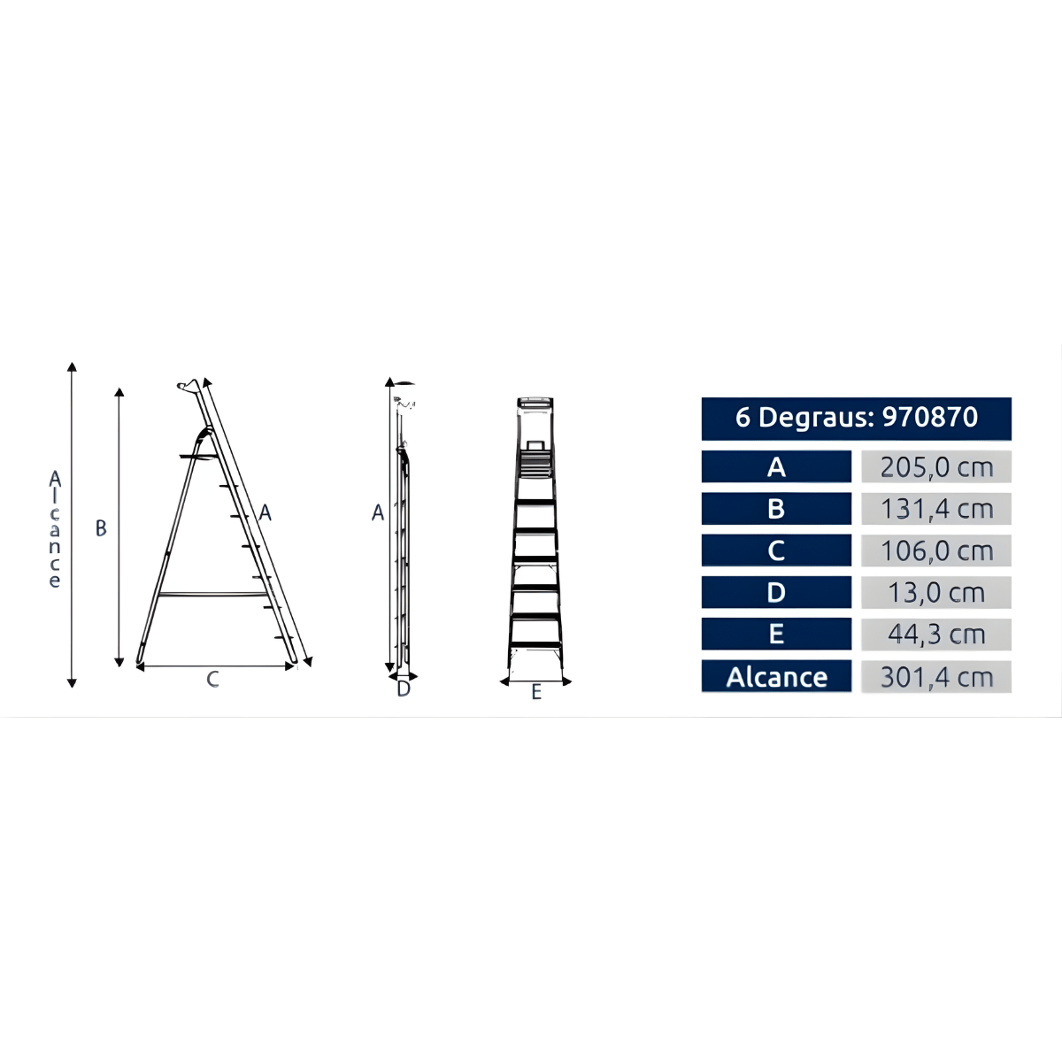 Escada de Alumínio Doméstica Comfort com 6 Degraus Alumasa