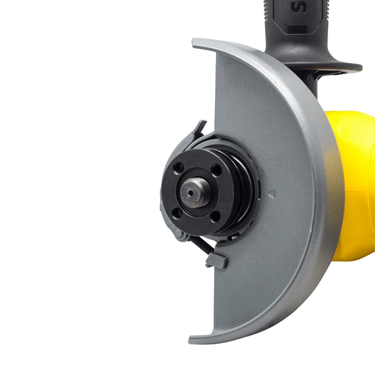Oferece um ajuste rápido da guarda de proteção e empunhadura lateral com 3 posições para mais conforto, conta também com gatilho tipo alavanca com bloqueio para evitar arranques acidentais, função de freio, o disco para em 3 segundos uma vez que o interruptor é liberado.