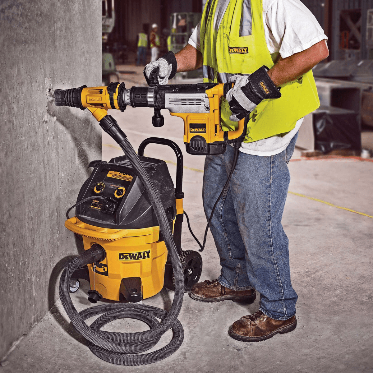 Compatível com martelos SDS MAX e 1-1/8 Hexagonal, este extrator de pó da Dewalt é uma ferramenta versátil e indispensável.