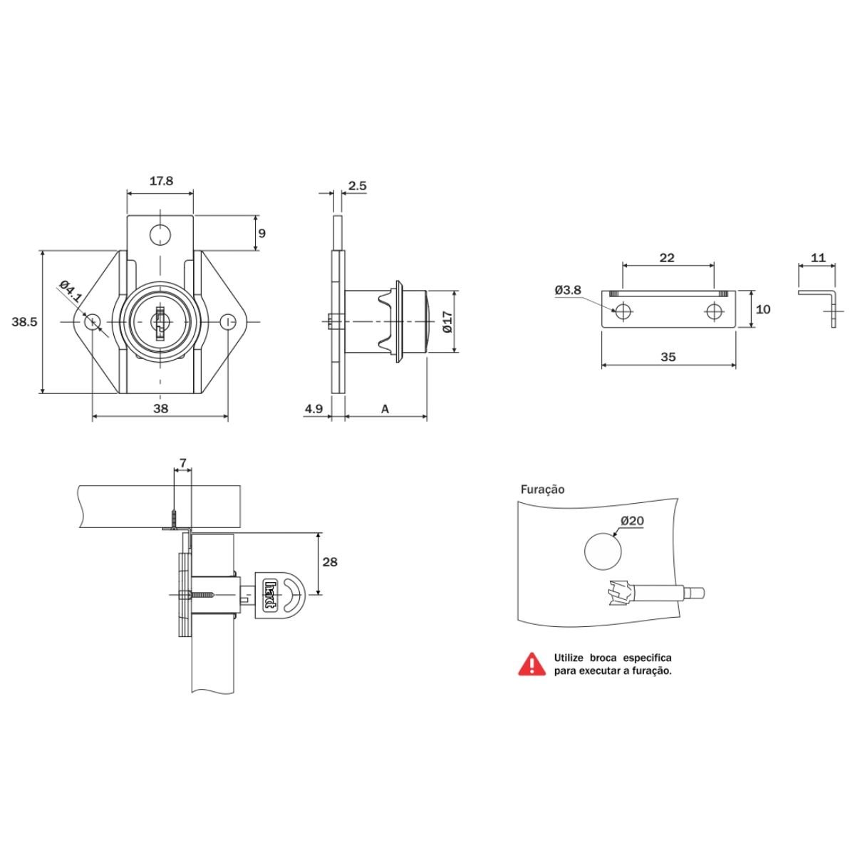Fechadura para gaveta e outras aplicações similares