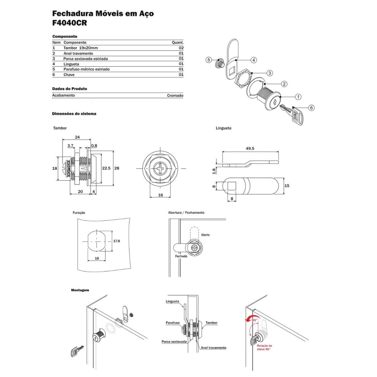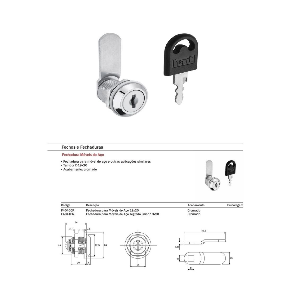 - Fechadura para móvel de aço e outras aplicações similares