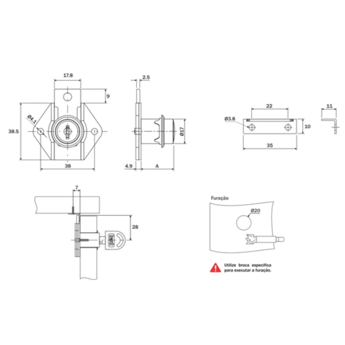Fechadura Segredo Unico para Gaveta com Batente 17 X 22mmTamanho: 17 X 22 | Quant: 3x