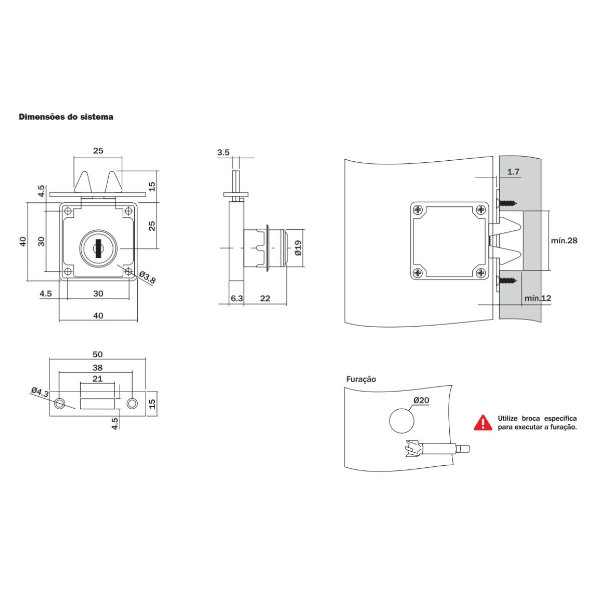 Fechadura Segredo Unico para Gaveta com Batente 17 X 31mm Quant: 35x