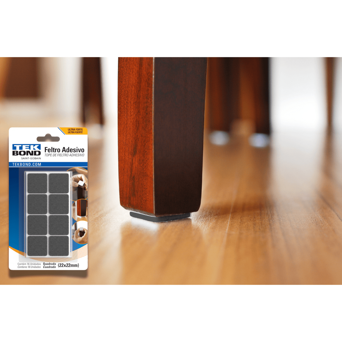 Com seu formato ideal para móveis de base reta, como sofás, camas e mesas, ele combina alta aderência, durabilidade e uma estética discreta, que se adapta a qualquer decoração.