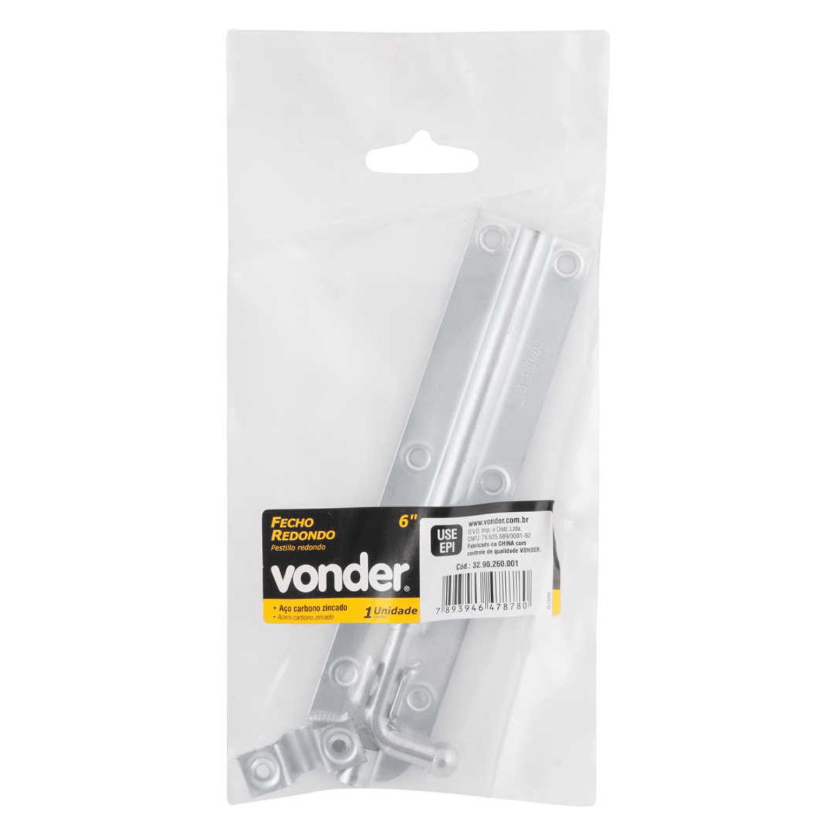 Ferrolho em metal para portas e janelas, com acabamento zincado.