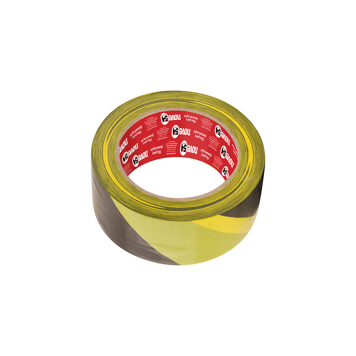 - Transparente com faixas transversais impressas em amarelo e preto coberto com adesivo à base de resina e borracha.