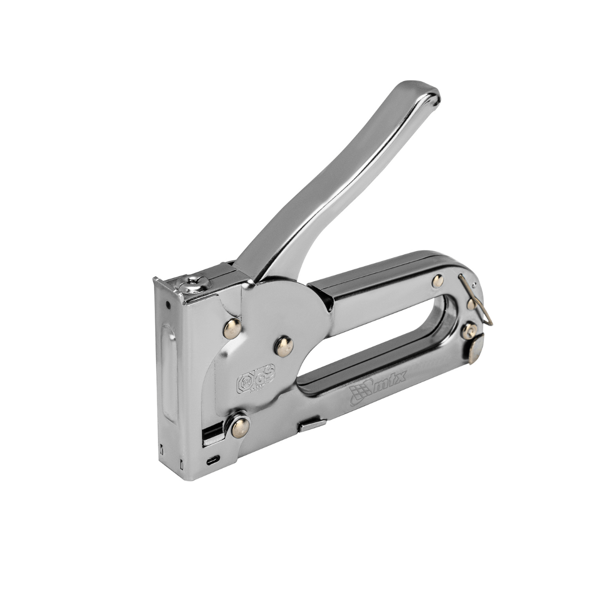 Armazenamento e Transporte Seguro: Equipado com um grampo de fixação que segura a alça em posição, o Grampeador Manual MTX 409039 evita acionamentos acidentais, uma característica de segurança essencial para o armazenamento e transporte da ferramenta. Esta funcionalidade previne danos inesperados e garante a segurança do usuário.