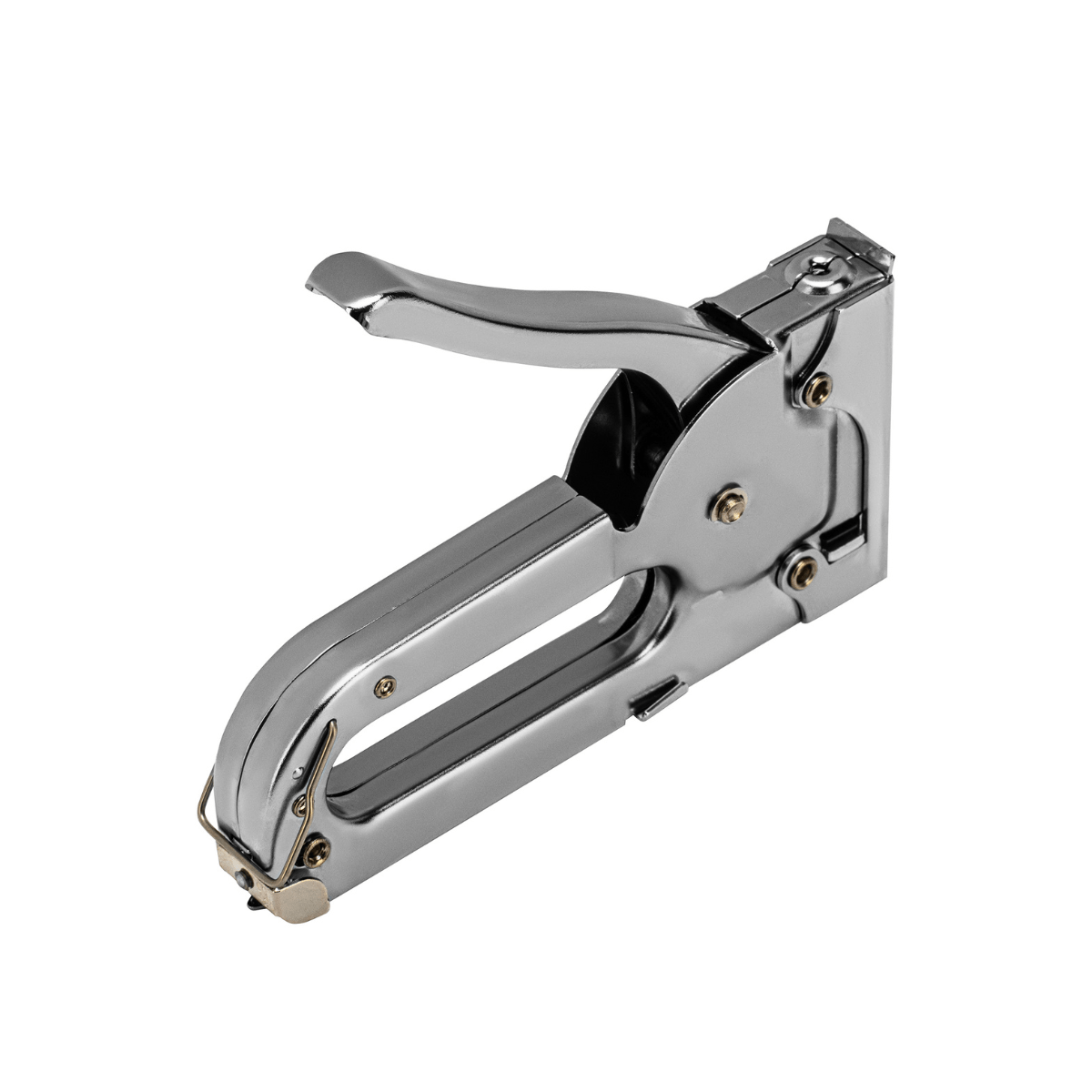 Proteção Contra Danos: O acabamento cromado do corpo não apenas realça a estética da ferramenta, mas também fornece uma proteção efetiva contra a corrosão. Este revestimento protege a grampeadora contra os elementos, garantindo que ela mantenha sua funcionalidade e aparência por muito tempo.