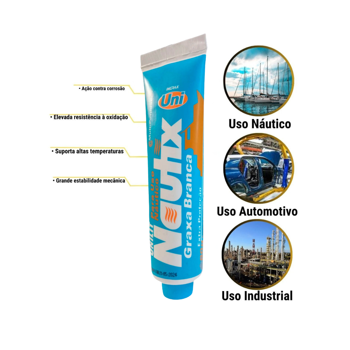 Nautix é aditivada para maior proteção, com alta performance lubrificante, hidrorepelente e tolera altas temperaturas. De grande estabilidade mecânica, tem boa adesão e fácil aplicação.