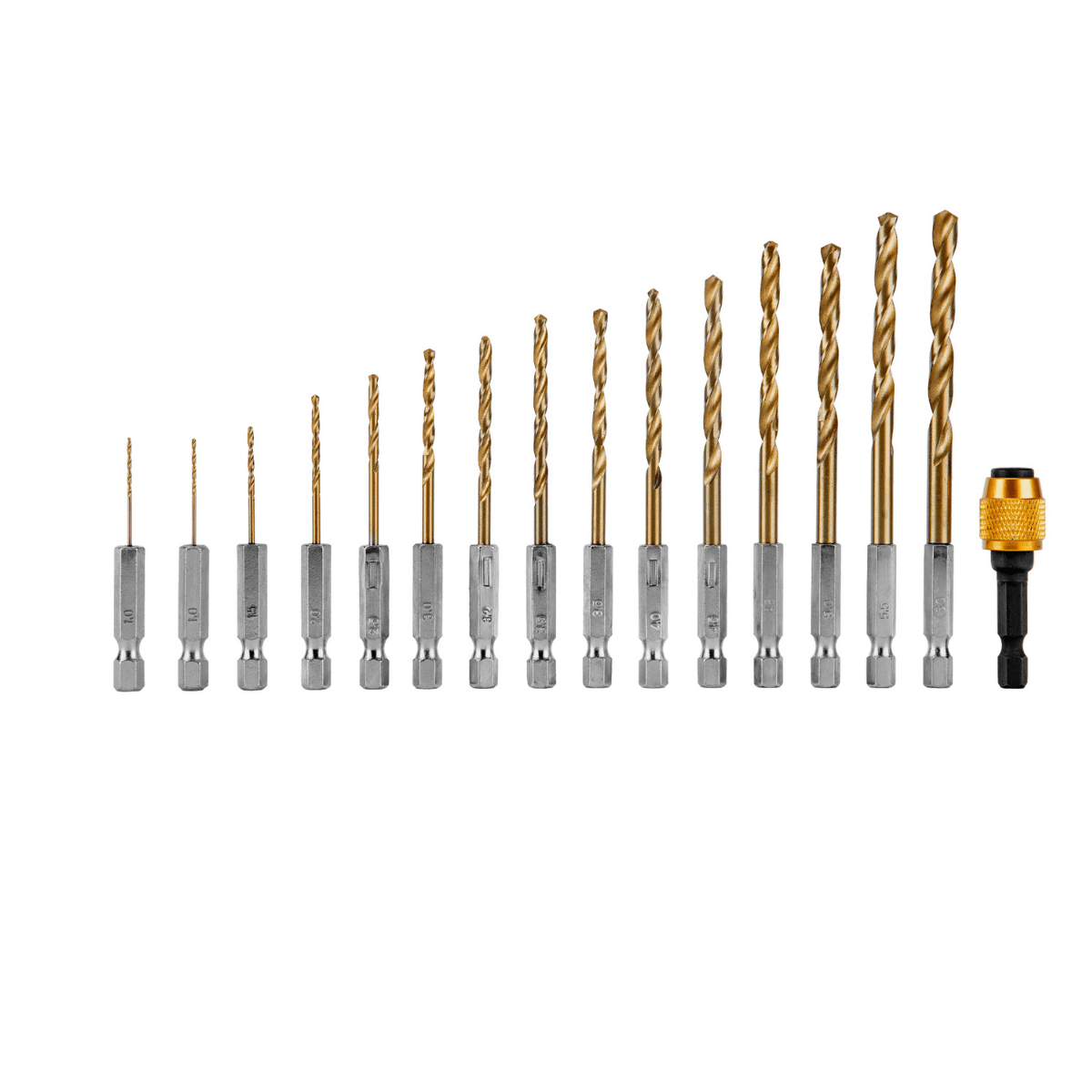 - Proteção Contra Desgaste e Corrosão: As brocas possuem um revestimento de nitreto de titânio, que não só previne a formação de ferrugem, mas também aumenta significativamente a resistência a danos, mantendo a eficácia das brocas ao longo do tempo.