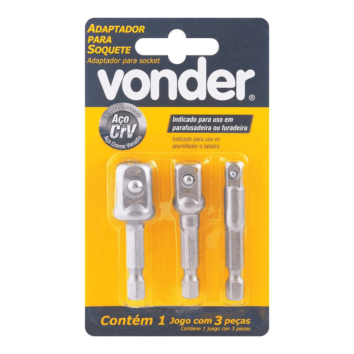 - Aplicação Comercial: Para parafusadeiras com ou sem impacto, adapta soquetes de 1/4, 3/8 e 1/2. Torque máx.: 71 N.m.
