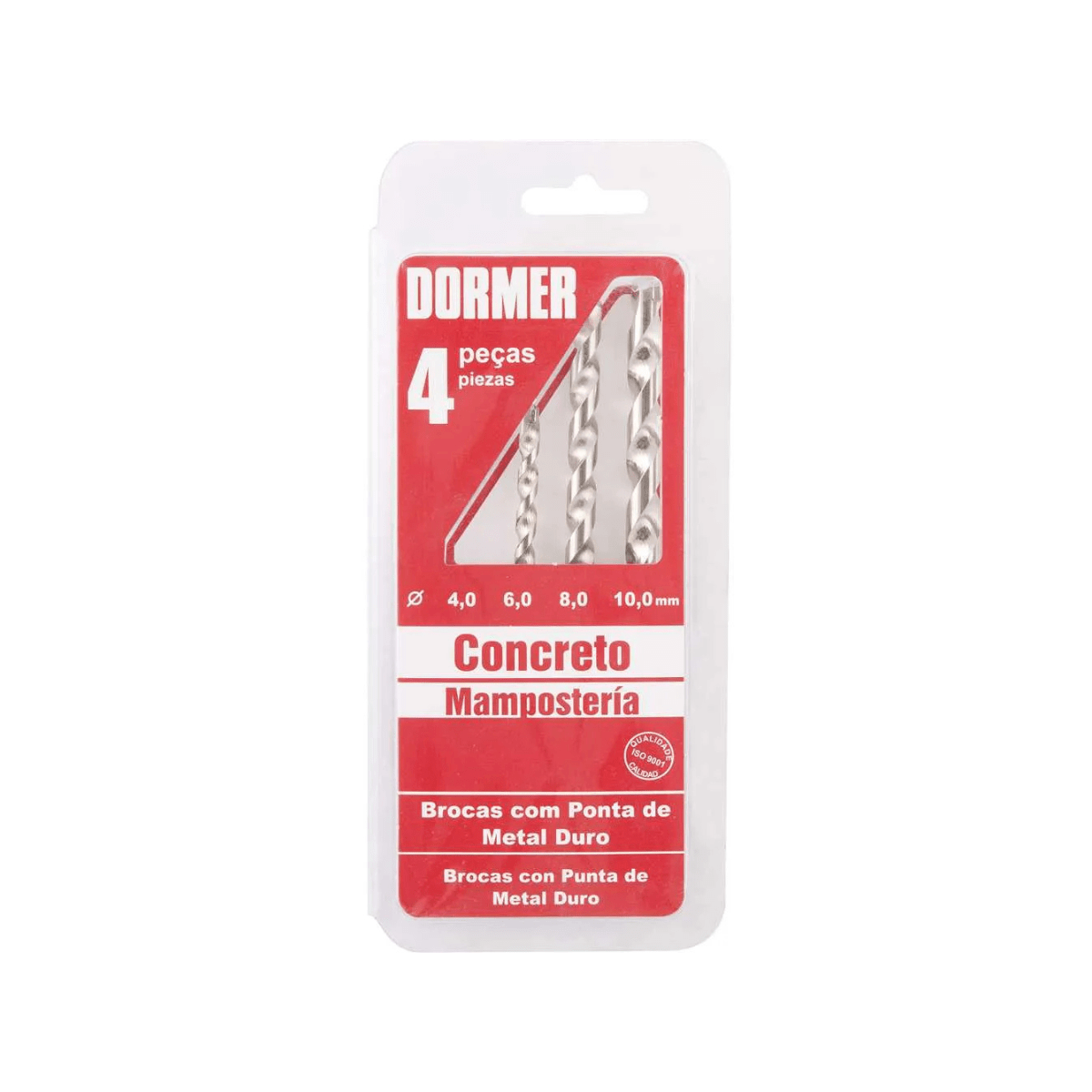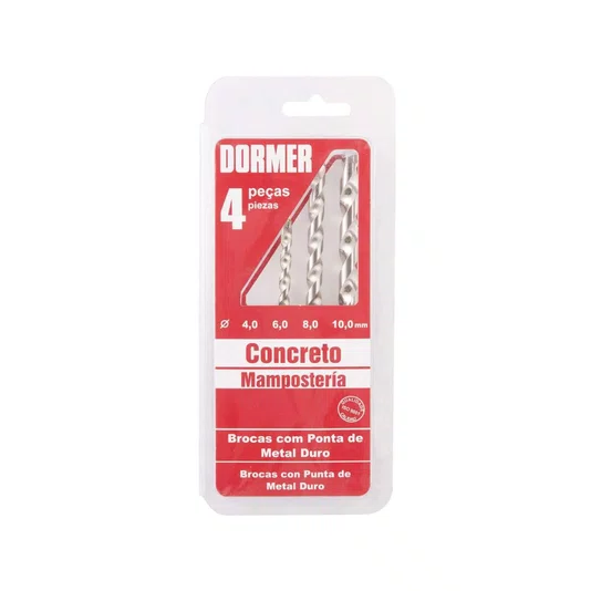 - Composição do Jogo: brocas de diâmetro 4 mm, 6 mm, 8 mm e 10 mm, com pastilha de metal duro (Wídea)