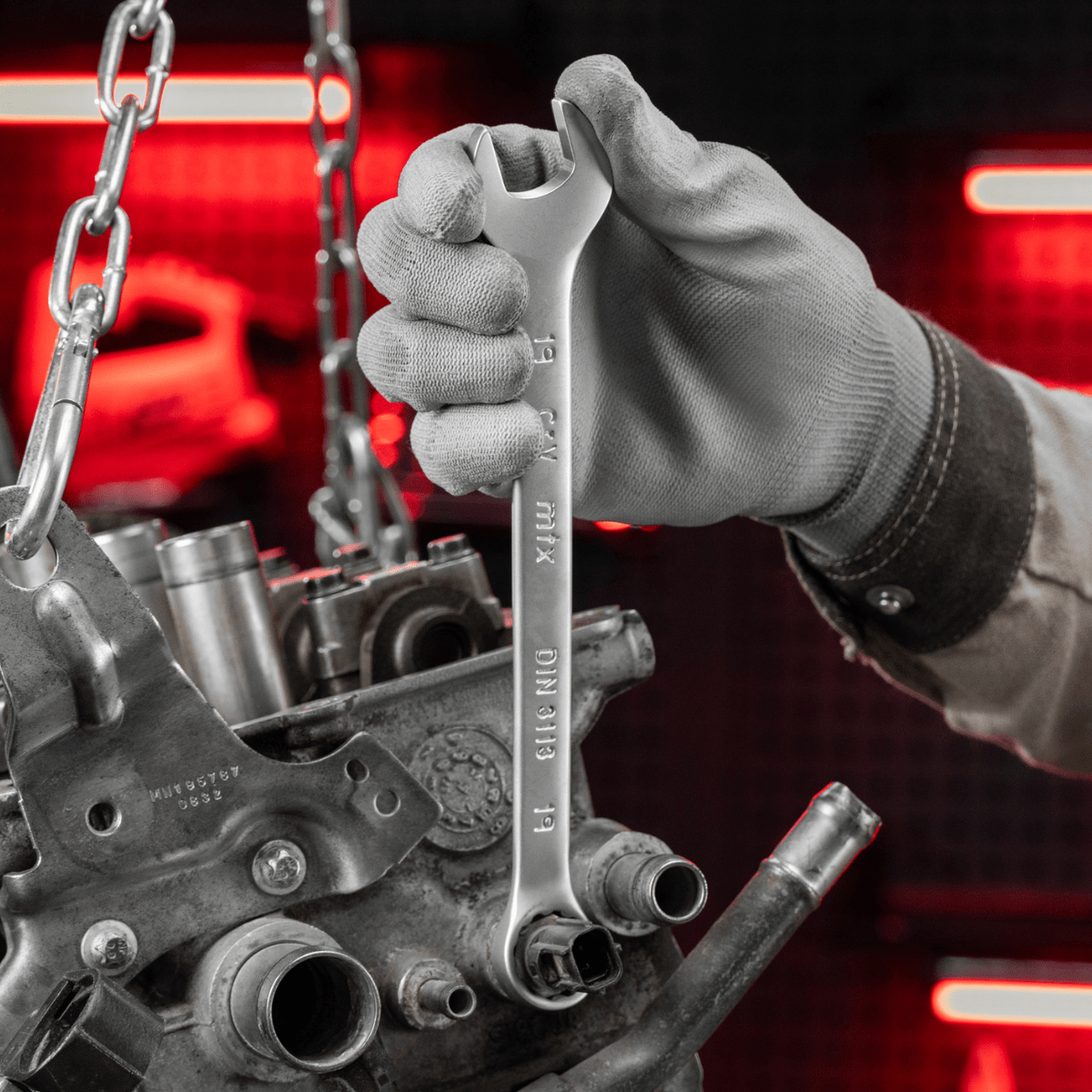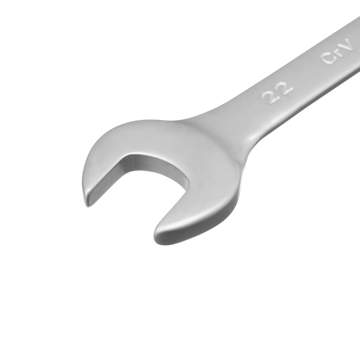 Feitas em aço cromo vanádio, as chaves combinadas possuem resistência e durabilidade, além de um acabamento cromado fosco que confere proteção contra a oxidação.