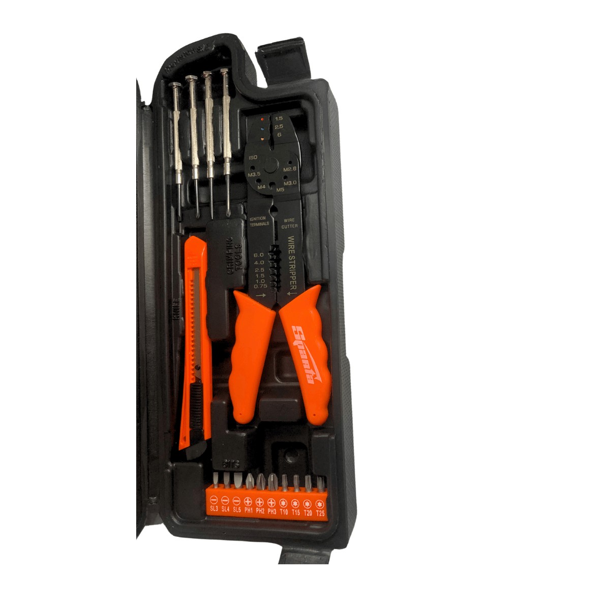 - 01 Alicate prensa terminais com jogo de 20 bits (Hex H3 - H4 - H5 MM) (Quadrado S1 - S2) (Adaptador) (Torx T10 - T15 - T20 - T25)