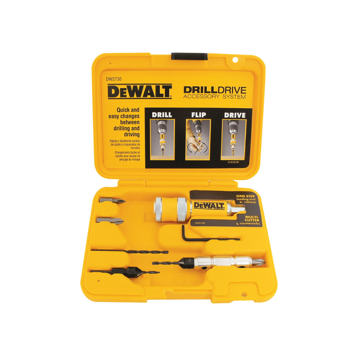 Este kit é recomendado para uso em perfuração de madeira e é compatível com máquinas de todas as marcas com mandril mínimo de 3/8 (10mm). O Jogo Furar/Parafusar DeWalt DW2730 é fabricado em aço resistente para maior vida útil e possui um desenho exclusivo para evitar deslizamento da ponta, reduzindo assim os danos à cabeça dos parafusos.